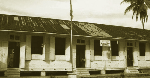 Alkisah, SD Kotanopan dulunya berbentuk panggung dengan atap baja, berdinding kayu, rangka kayu, dan tangga kayu. Jendelanya besar, kalau dibuka bersuara keras. Bangku dan meja didesain menyambung. Meja dibentuk dengan kemiringan tertentu agar murid-murid nyaman menulis dan menggambar. Sebab, meja yang datar tentulah membuat murid duduk membungkuk. Dan di atas papan tulis yang berkaki tiga dengan cat hitam mengkilat, ada tulisan besar “Doedoek Memboengkoek akan Merusakkan Mata.” Itu pelajaran dasar sikap peserta didik, sekaligus pelajaran dasar-dasar huruf sejak masa kolonial.