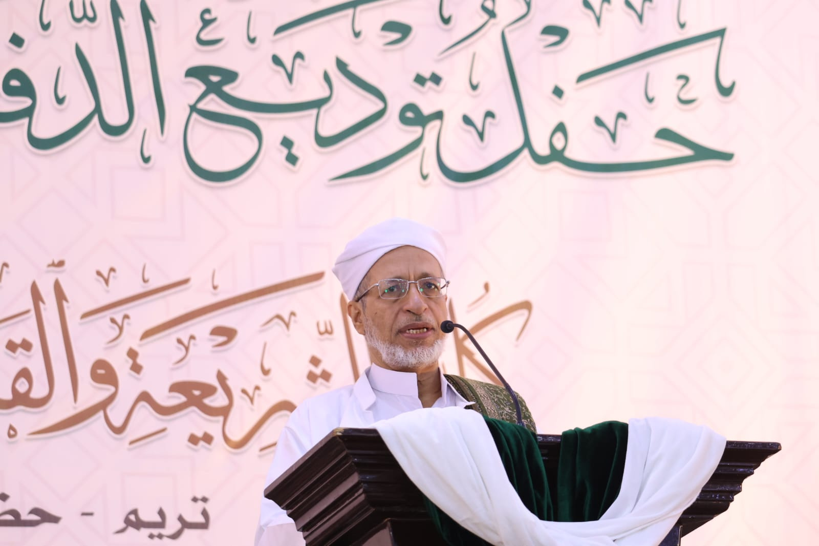 Rektor Universitas Al-Ahgaff, Prof. Dr. Al-Habib Abdullah bin Muhammad Baharun, menyampaikan sambutan di hadapan wisudawan