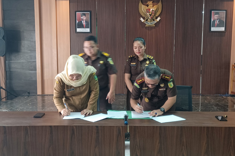 Pendatanganan MoU dilaksanakan antara Kadis PUPR Madina Elpianti Harahap dengan Kajari Madina Novan Hadian AH di Aula Kejaksaan Negeri Mandailing Natal.