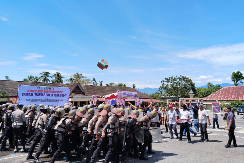 Kapolres Madina AKBP.Arie Sopandi Paloh mengatakan, simulasi ini adalah simulasikan melakukan sistem pengamanan Kota (Sispam Kota) ‘Operasi Mantap Praja Toba 2024’ Pemilihan Kepala Daerah Mandailing Natal. Kegiatan ini bertujuan sebagai kesiapan pengamanan Pilkada serentak tahun 2024 di wilayah Mandailing Natal.