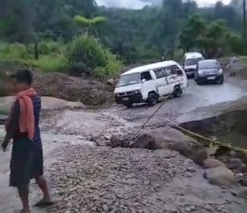 Kondisi jalan Provinsi menuju Pantai Barat Madina parah. Kendaraan yang melintas harus extra hati hati ( ist )
