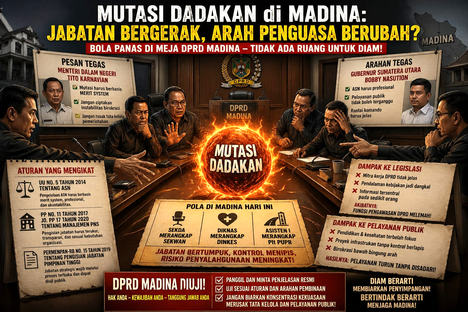 Di Mandailing Natal, mutasi tidak lagi sekadar rotasi jabatan. Ia telah menjelma menjadi pola konsentrasi kendali — dan kini, bola panas itu tidak bisa lagi berhenti di meja eksekutif.