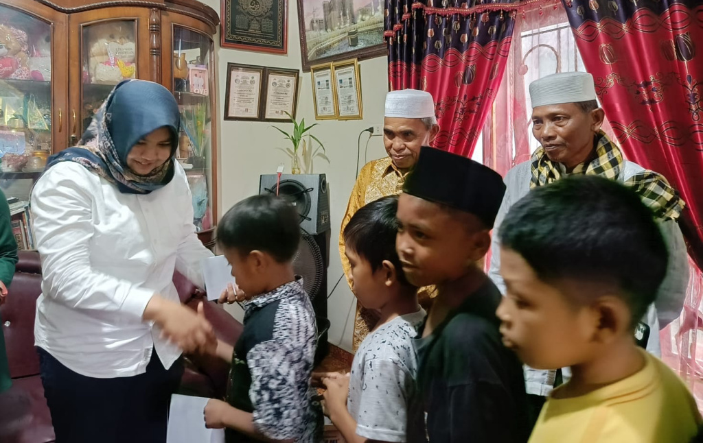 Atika Azmi Utammi menyampaikan terima kasih kepada anak yatim dan piatu, juga kepada tokoh masyarakat dan kaum ibu yang telah menyambut kedatangannya.