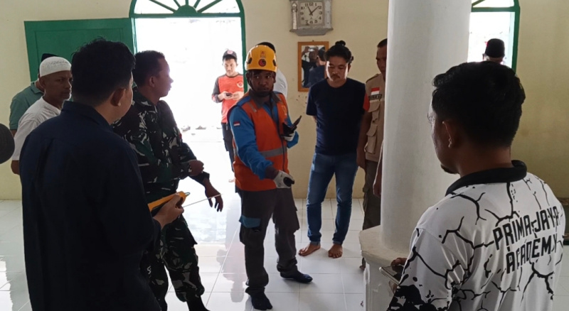 Kepala Desa Parbangunan saat menunjukkan ke petugas titik hawa panas yang terasa dari lantai masjid(ist )