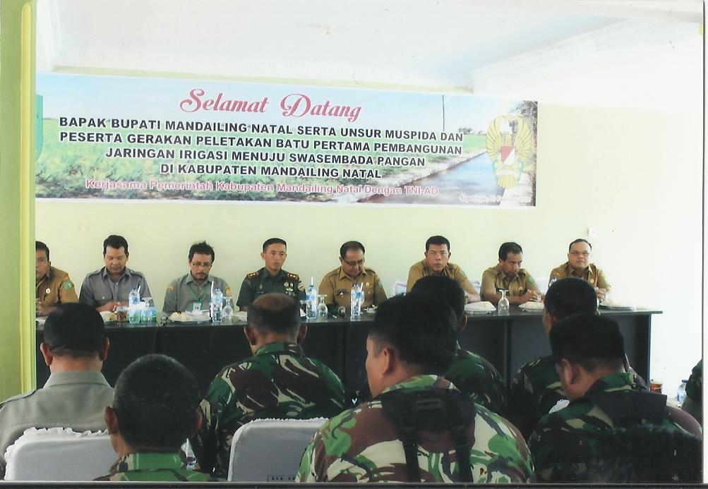 "Setelah dilakukanya pencanangan peletakan batu pertama pembangunan jaringan irigasi ini, saya berharap Dinas Pertanian dan TNI dapat memberikan kontribusi nyata terhadap peningkatan produksi padi untuk mewujudkan swasembada pangan di Kabupaten Mandailing Natal," ujar Zulkarnen Siregar.