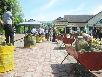 MADINA- Sebanyak 417 kilogram ganja siap edar dimusnahkan, Jumat (20/1) sekira pukul 09.00 WIB, di halaman Mapolres Mandailing Natal. Selain ganja siap edar, sedikitnya 5.954 batang ganja juga dimusnahkan dengan cara dibakar.