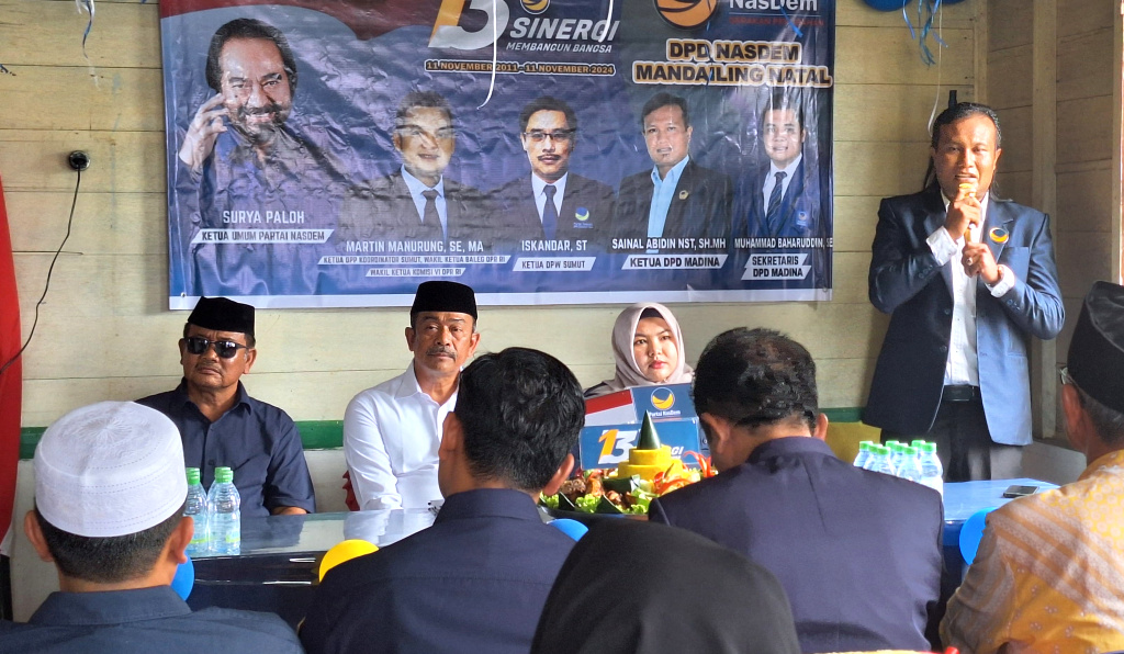 Dilihat, hadir Ketua DPD Partai NasDem Madina, Sainal Abidin Nasution, SH, MH, Ketua Dewan Pertimbangan, H. M. Daud Lubis, lima orang Anggota DPRD Madina Fraksi NasDem, pengurus ranting, dan masyarakat.