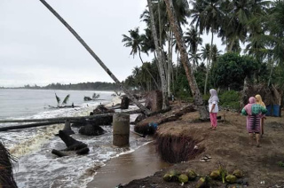 MUARA BATANG GADIS (Mandailing Online) – Pemukiman Desa Tabuyung, Kecamatan Muara Batang Gadis, Mandailing Natal, Sumut dalam bahaya menyusul rangkaian abrasi pantai laut.