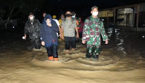 Wakil Bupati Madina, Atika Azmi Utammi Nasution meninjau banjir di Desa Muara Batang Angkola, Kecamatan Siabu, malam ini, Sabtu (18/12/2021).