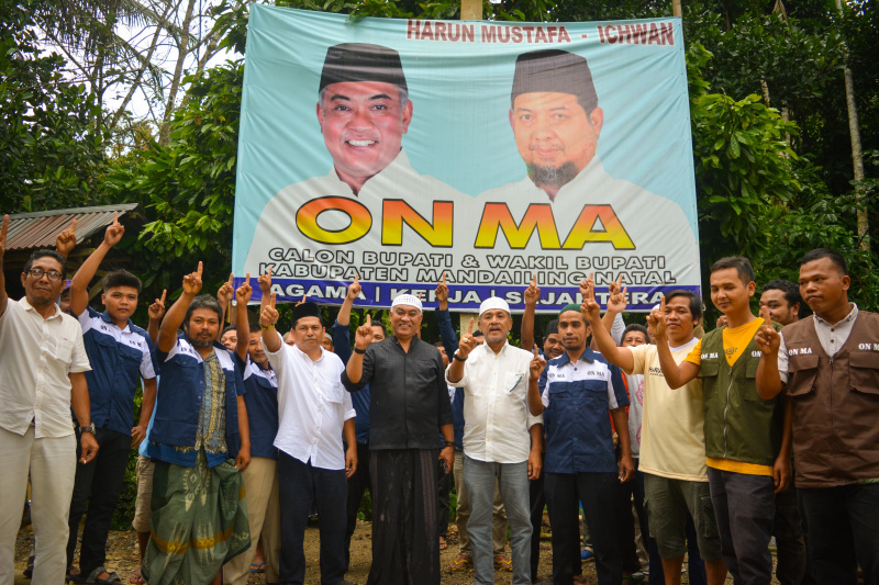 Harunpun menyempatkan diri tegur sapa dengan emak emak.” Pak Harun, kami dukung bapak jadi Bupati Madina berikurnya karena kami keluarga besar pondok pesantren Mustafawiyah. Anak anak kami banyak yang menuntut ilmu agama di Mustafawiyah,” kata Rosita salah seorang emak emak yang turut mencegat rombongan. Jum’at 11/10/2024.