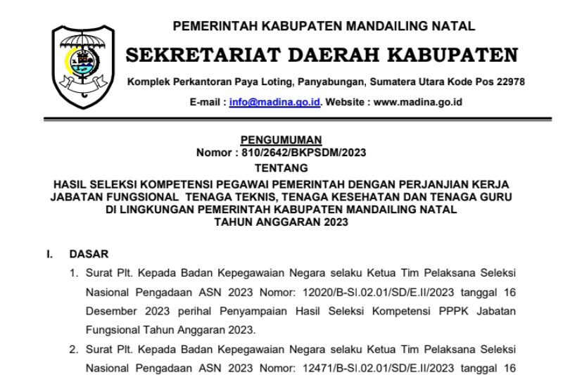 PANYABUNGAN -( Mandailing Online ): Gelombang protes atas pengumuman hasil seleksi PPPK ( Pegawai Pemerintah Dengan Perjanjian Kerja ) di Kabupaten Mandailing Natal bermunculan dari peserta yang menganggap dirinya terzolimi. Paranpelamar PPPK itu menganggap, hasil pengumuman janggal, mulai dari diumumkan saat menjelang libur natal diduga untuk menghindari gelombang protes sampai pada peserta menganggap pengurangan nilai yang tidak wajar serta protes atas nilai SKTT yang tidak wajar.