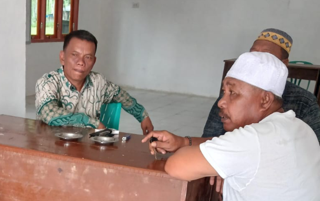 Pj. Kepala Desa Tabuyung, Iskandar Muda (baju batik) mengeluarkan pernyataan terkait tudingan terhadapnya.