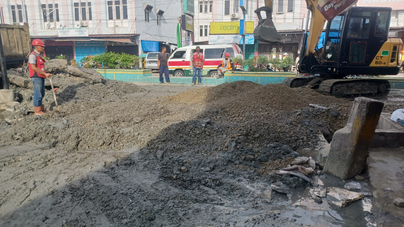 Drainase Jalan Negara Pasar Lama Penyebab Banjir Mulai Diperbaiki