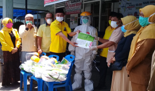 PANYABUNGAN (Mandailing Online) – DPD Partai Golkar Madina, Senin (13/4/2020) menyalurkan Alat Pelindug Diri (APD) berstandar WHO.