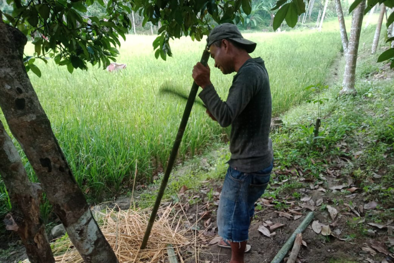 “dua pekan ini, petani di saba tapus terpaksa berjaga jaga di sawah, tidak sesikit petani bahkan sampai bermalam di sawah untuk menghalau serangan hama babi itu,” kata Mala.