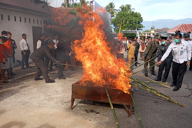 Pemusnahan barang bukti narkotika ini dilakukan Kapolres dan Forkopimda serta ulama setelah sebelumnya dilakukan penandatanganan berita acara pemusnahan.