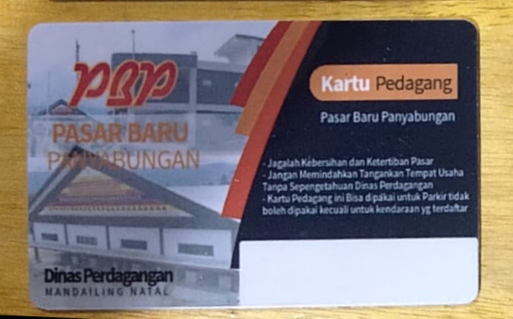 Namanya Kartu Pedagang Pasar Baru Panyabungan. Selain sebagai kartu pedagang juga berfungsi sebagai kartu parkir.