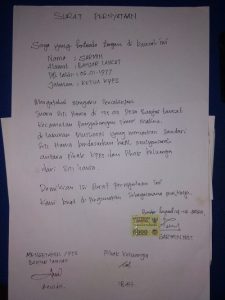 Surat pernyataan warga yang menyebutkan anaknya sedang merantau tapi oleh KPPS disuruh supaya si perantau diwakilkan keluarganya untuk mencoblos Pilkada Madina 2020.