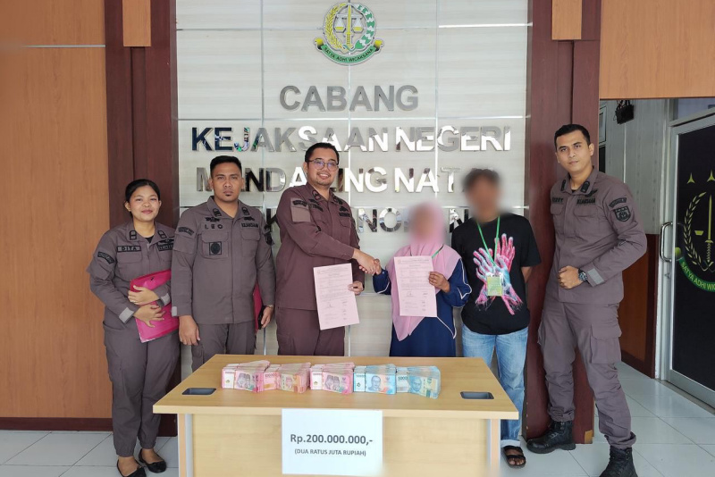 Bertempat di Kantor Cabang Kejaksaan Negeri Mandailing Natal di Kotanopan pada hari Kamis (20/11/2025), tim Penuntut Umum secara resmi menerima penitipan uang pengganti dari Halimah, istri terdakwa Abdullah.