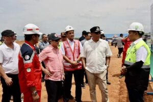 Bupati Madina H.M.Ja’kfar Sukhairi Nasution beserta tim TP2D Prof. Todung Mulia Lubis saat meninjau progress pembangunan Bandar Udara Mandailing Natal