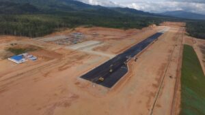 Kondisi pembangunan Bandar Udara saat ini, pihak pengembang sedang melakukan pengerjaan hotmix landasan pacu bandara.( ist)