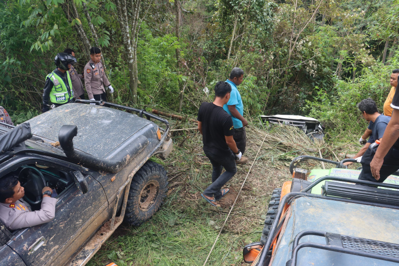 Mobil Offroad Kapolres Madina dan IOF Evakuasi Minibus yang Masuk Jurang di Putusan