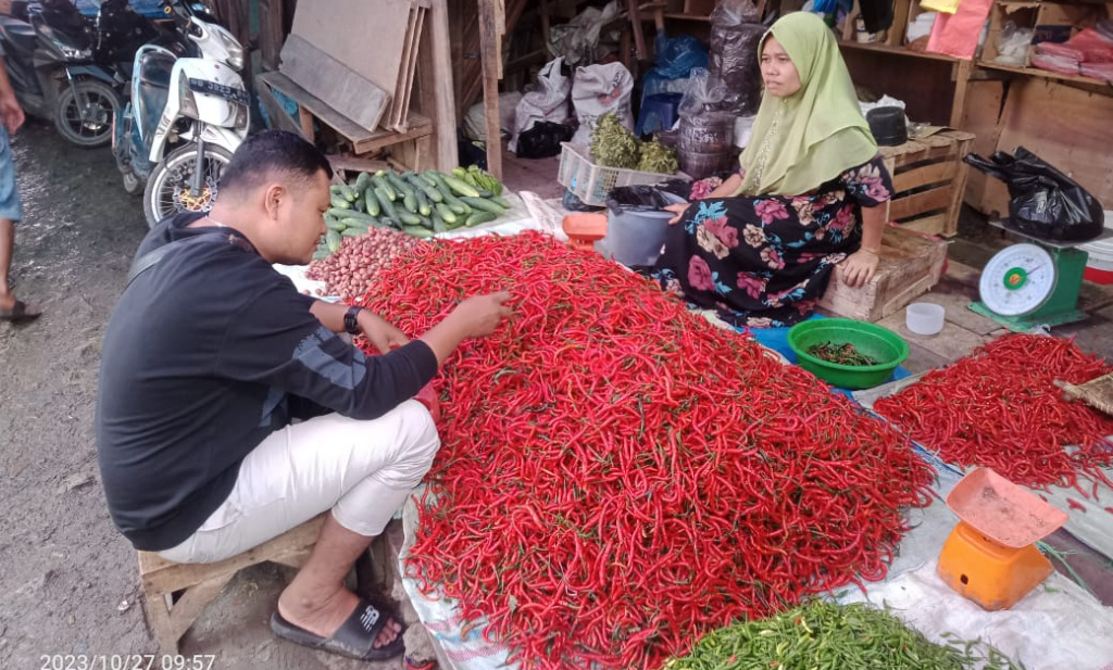 Cabai hijau diharga pada kisaran 30.000 per kg. Cabai kering stagnan di harga 80.000 per Kg.
