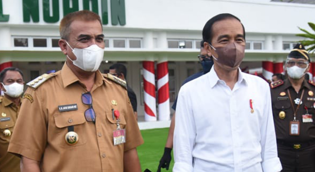 MEDAN (Mandailing Online) – Bupati Mandailing Natal (Madina), Jakfar Sukhairi Nasution menghadiri pertemuan dengan Presiden RI, Joko Widodo tentang penanganan Covid-19 di Sumatera Utara, Kamis (16/9/2021).