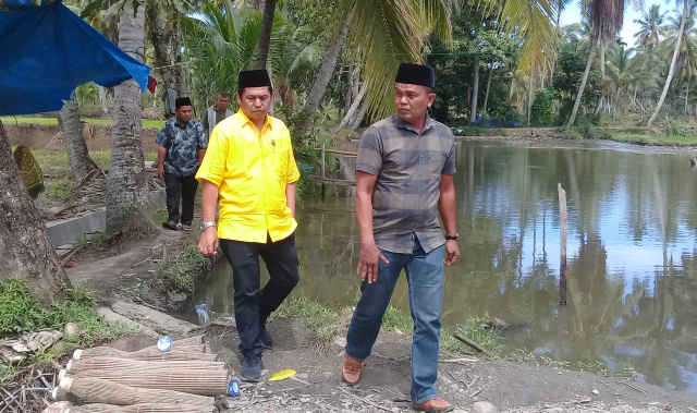 Sobir Lubis ditemani kepala desa kaum ibu berkesempatan meninjau langsung kondisi surau dan pemandian itu.