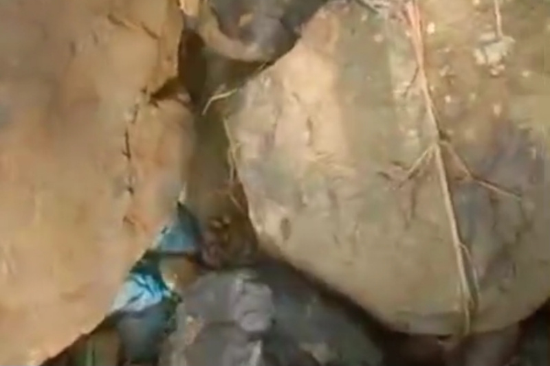 Dalam video yang beredar di media sosial sekujur tubuh korban tertimpa batu kecuali bagian kepala korban.